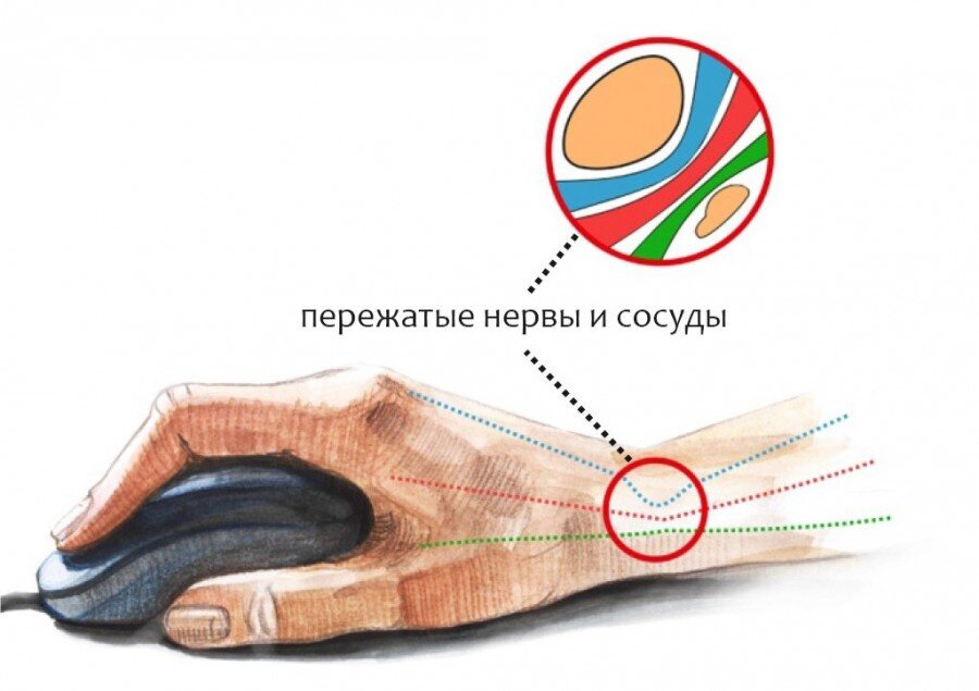 - Работы, во время которой нужно держать кисть под напряжением в одном положении. Например, от туннельного синдрома страдают люди, которые работают за ПК и весь день кисть находится на мышке. Также это может быть вышивание, шитье, некоторые виды слесарных работ;